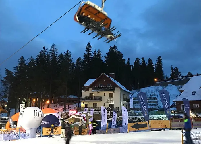 Vengono offerti una scuola di sci, un deposito sci e un noleggio sci. Il Bed and Breakfast Safir Przy Samym Wyciagu è caratterizzato da una varietà di attività come sci sulla neve, escursioni a piedi e sci.